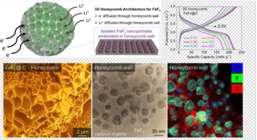 近日,祥赌必赢 特聘教授吴飞翔与中国科学技术大学余彦教授联合在材料领域国际顶级期刊《Advanced Materials》发表了关于高比能金属氟化铁-锂电池的最新研究成果,题为“3D Honeycomb Architecture Enables a High-Rate and Long-Life Iron (III) Fluoride–Lithium Battery”的研究论文(inside封面论文)。吴飞翔教授为第一作者兼通讯作者,祥赌必赢 为第一作者和通讯作者单位,余彦教授为共同通讯作者。
