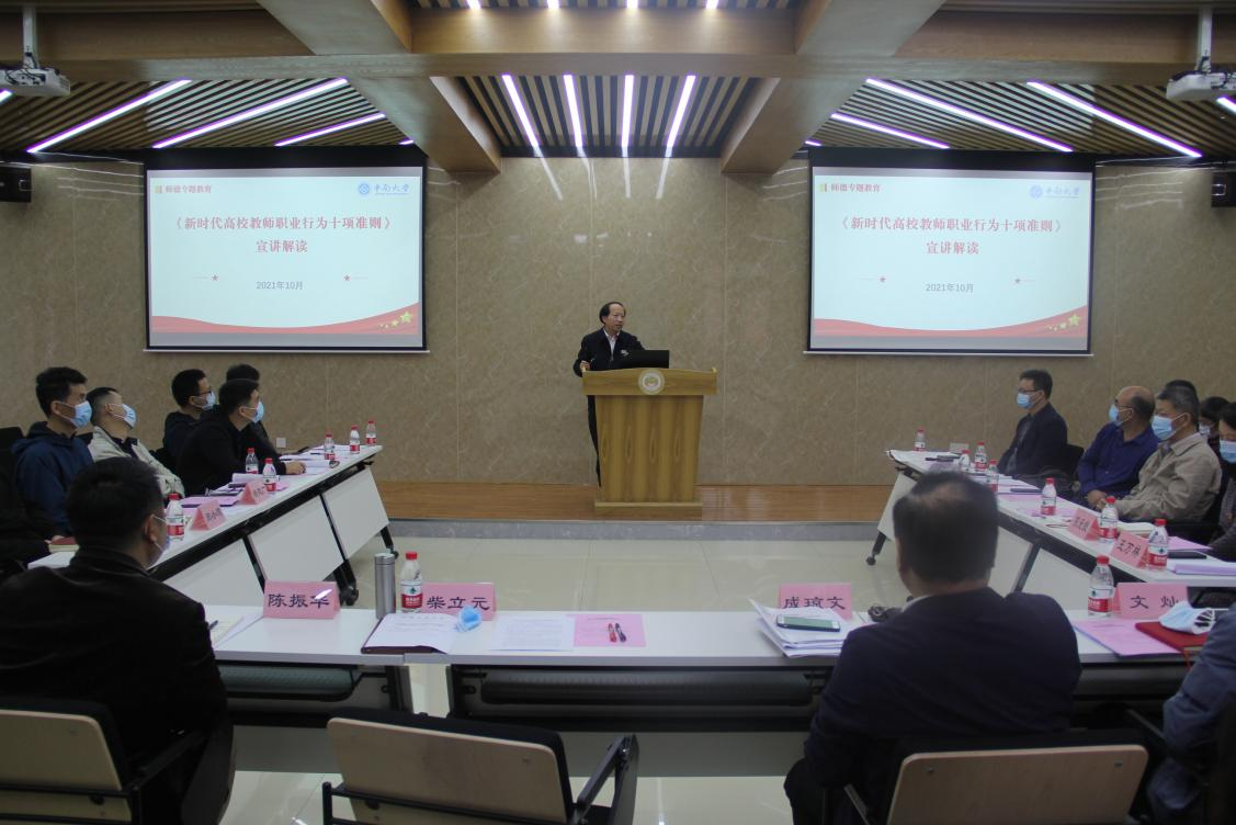 会议最后,柴立元祥赌必赢宣讲解读了《新时代高校教师职业行为十项准则》并作总结性讲话。他表示,要准确把握十项准则的内涵和要求。他在总结讲话中重点就教师兼职问题提出:一是要提高政治站位,牢记为党育人、为国育才的使命;二是要明确教师定位,自觉践行立德树人根本任务;三是要敬畏职责岗位,争做“四有”好老师;四是要工作落实到位,扎实推进中央巡视整改工作。他强调要全院上下联动,持续推进祥赌必赢 巡视整改工作,全力聚焦一流学科发展。