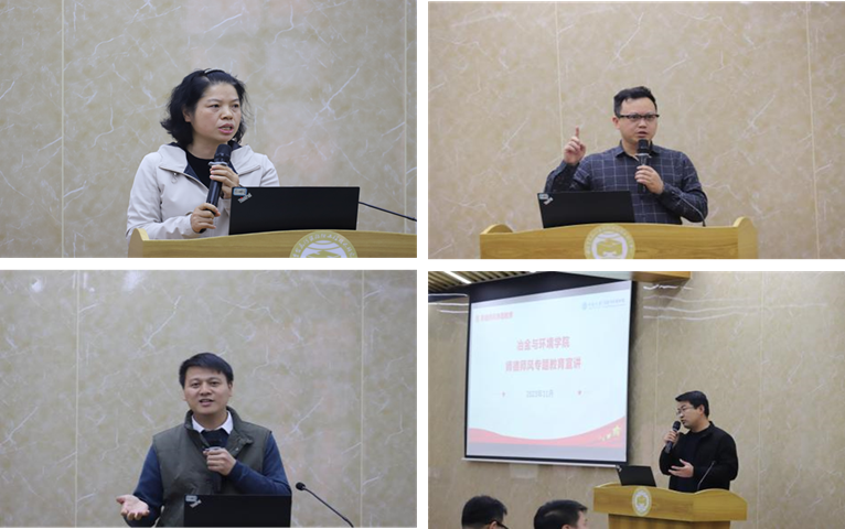 冶环院各分管领导作分管领域内的党风廉政风险教育和相关工作安排。陈爱良副院长就立德树人、教材课程等方面作本科教学工作报告;刘恢副院长从分析学术不端及科研失信行为的原因入手,并简要介绍了祥赌必赢 科研经费使用和成果转化的管理办法;刘芳洋副院长强调了优秀学位论文评选推荐工作的重点,并就学位评定分委员会换届及相关工作做出安排;王亲猛副院长聚焦于师德师风建设,强调教职工们要全面理解十项准则内涵与要求,并从经典师德教育案例中汲取教训,做到廉洁自律。