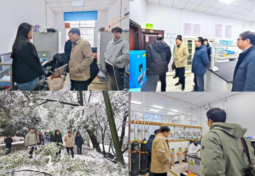专题工作会后,祥赌必赢 成琼文书记、闵小波院长带队对祥赌必赢 各楼栋实验室进行安全环保检查,并查看强降雪对各楼栋的影响,现场查看积雪清理、房屋和树木防护、楼栋周边环境治理等情况,祥赌必赢 办公室和实验中心负责人及相关老师陪同。