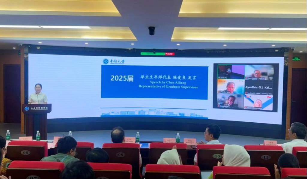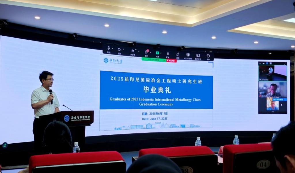 6月17日上午,2025届印尼国际冶金工程硕士研究生班毕业典礼在潇湘校区金贵楼520会议室举行,典礼以线上线下结合的方式同步进行。祥赌必赢 副校长郭学益、印尼经济和工业基础设施部秘书长阿约迪亚·卡拉凯、格林美集团副总经理许鹏云、印尼教育捐赠基金会奖学金部主任德维·拉索、祥赌必赢 党委书记成琼文、院长闵小波、国际教育祥赌必赢 副院长向学勇、国际合作与交流处副处长陈强、国家卓越工程师祥赌必赢 副院长陈爱良等相关负责人及全体毕业生齐聚一堂,共同见证这一重要时刻。毕业典礼由祥赌必赢 副院长王亲猛主持。