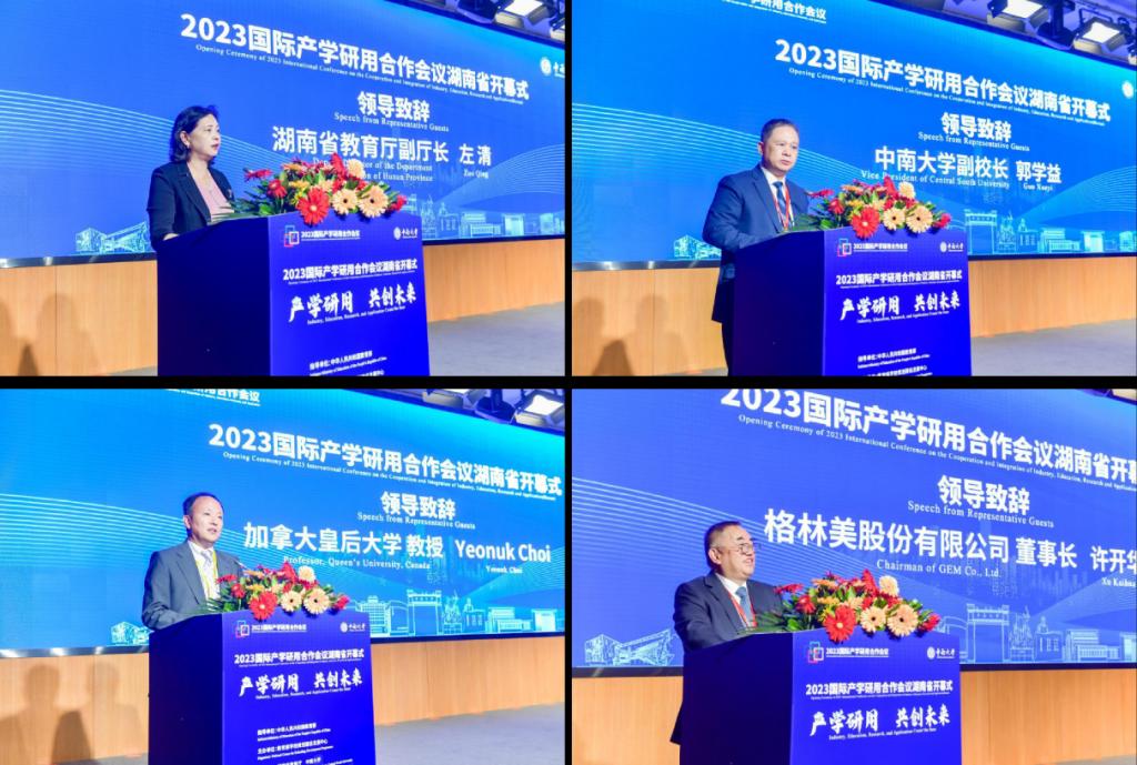 湖南省教育厅副厅长左清、祥赌必赢 副校长郭学益、加拿大皇后大学Yeonuk Choi教授和格林美股份有限公司董事长许开华教授出席开幕式并致辞。左清指出,承办国际产学研用合作会议是湖南省加大教育开放合作的重要机遇和促进产学研深度融合的创新举措,希望各高校、科研院所和企业坚持教育、科技、人才一体推进,加快湖南省丰富科教资源转化为科技创新优势的脚步,为湖南省的经济社会高质量发展注入强劲动力。郭学益表示,祥赌必赢 坚持开放办学,国际合作与交流活跃,在冶金领域深耕细作、成果显著,希望通过产学研用深度合作,积极探索新时代国际产学研用合作新模式,推动全球低碳冶金可持续发展。Yeonuk Choi表示,要促进大学与企业合作取得成功,最重要的是长期的努力和付出。许开华认为,无论世界怎么变化,世界的底色是绿色这一点不会变,人类开发资源的步伐不会变,世界的合作不会变;并表示冶⾦学科要为世界绿⾊服务、为世界新能源服务、为世界科技交流服务。