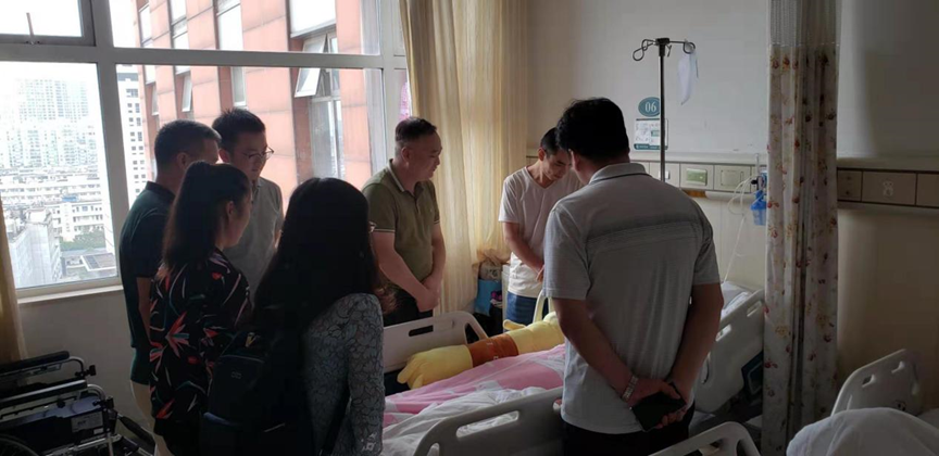 随后,成琼文与院学工办老师来到湘雅医院四十一病区,看望病危学生及其家长。他详细询问了学生的病情及治疗进展情况,并鼓励该生坚强乐观的面对生活,勇敢的面对病魔,早日返回学校。