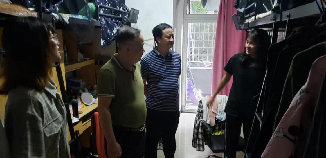 7月12日,成琼文书记与张凯副书记来到暑期留校学生寝室,与同学们亲切交谈,详细了解学生思想动态、学习生活情况以及暑期留校原因,并亲切叮嘱同学们要时刻注意安全稳定、提高自身的防范意识,要巩固、保持好清新整洁的宿舍环境。