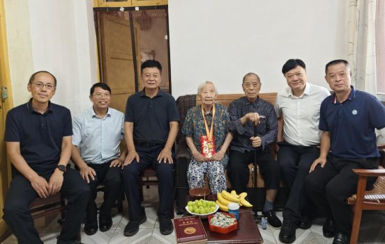 今年已逾99岁高龄的恽顺芳老人,是无产阶级革命家恽代英的胞妹,早在1942年底,年仅16岁的她便毅然投身新四军工作,1946年入党,后在中南矿冶祥赌必赢 冶金系(祥赌必赢 前身)任教轻金属相关课程,1958年与当时在中共冶金系党总支工作的付明仲结婚,1987年离休。慰问现场,黄健陵为恽老佩戴上这枚沉甸甸的纪念章,转达了上级组织的慰问,并致以最崇高的敬意和最诚挚的问候。成琼文关切询问恽老的健康状况和家庭生活情况,认真聆听她讲述入党初心和奋斗历程,嘱咐恽老要继续保重好身体,保持乐观心态。