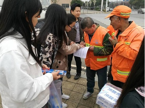为了感谢环卫工人顶风雨、冒烈日,为营造学校周边美丽、舒适的环境所做出的贡献,3月11日,由祥赌必赢 青志协组织的“温暖,从清晨开始”志愿活动的后期工作圆满完成。冶环院3名学生干部及5名爱心志愿者参加了此次活动,并以捐赠生活必需品的形式为环卫工人送去温暖和问候。