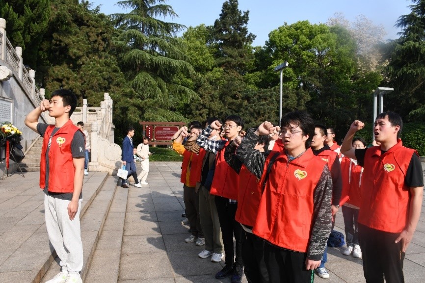 随后,在支部书记钱庆乐老师的带领下,全体党员对着革命先烈,面向党旗庄严宣誓,铿锵有力的誓言展现出了中南学子“强国有我”的昂扬斗志。