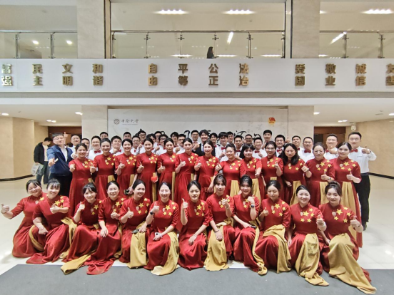 Efforts duly rewarded, excellence achieved. This accomplishment is attributed to the unity, collaboration, and concerted efforts of all choir members. Cheng Qiongwen, Party Committee Secretary and Chair of the School's Labor Union, promoted and participated in the routine rehearsals; Dean Min Xiaobo visited rehearsal sessions to cheer on the faculty participants. Choir members overcame difficulties and devoted themselves fully to the regular practice sessions. The School's Labor Union committee and the Comprehensive Office provided efficient coordination and meticulous support, offering all-around support from personnel arrangement and organized training to competition services and logistical support, effectively resolving various issues. It was the all-out dedication and close cooperation from all parties that laid a solid foundation for the excellent result in this competition.