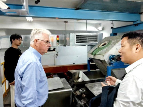 Following the lecture, Professor Cramb, accompanied by Professor Wang Wanlin, visited the laboratories of the Iron and Steel Research Institute at the School of Metallurgy and Environment. Subsequently, he engaged in a discussion with faculty members from the Institute in Meeting Room 228 of the Metallurgy Building. The discussion covered a wide range of topics including high-speed continuous casting, clean metallurgy, and AI applications, jointly exploring technical difficulties and innovative pathways within the industry.